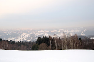 W sobotę rano zaświeciło słońce i temperatura dość szybko powędrowała z -10 na -5. Jak widać na obrazku, śniegu na górach nie brakuje.